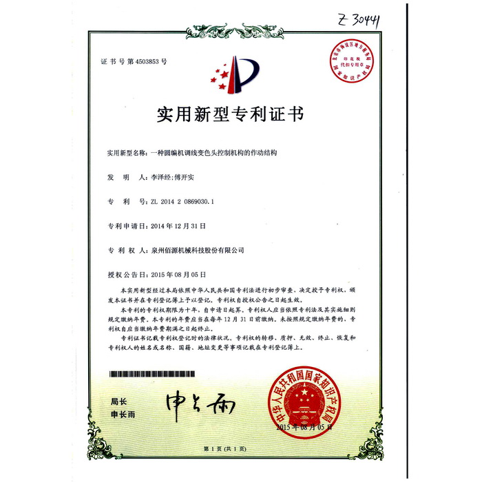 02一種圓編機調(diào)線變色頭控制機構(gòu)的作動結(jié)構(gòu)