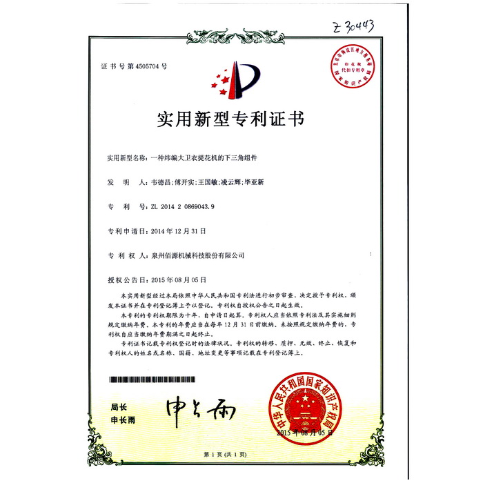 03一種緯編大衛(wèi)衣提花機的菱角組件